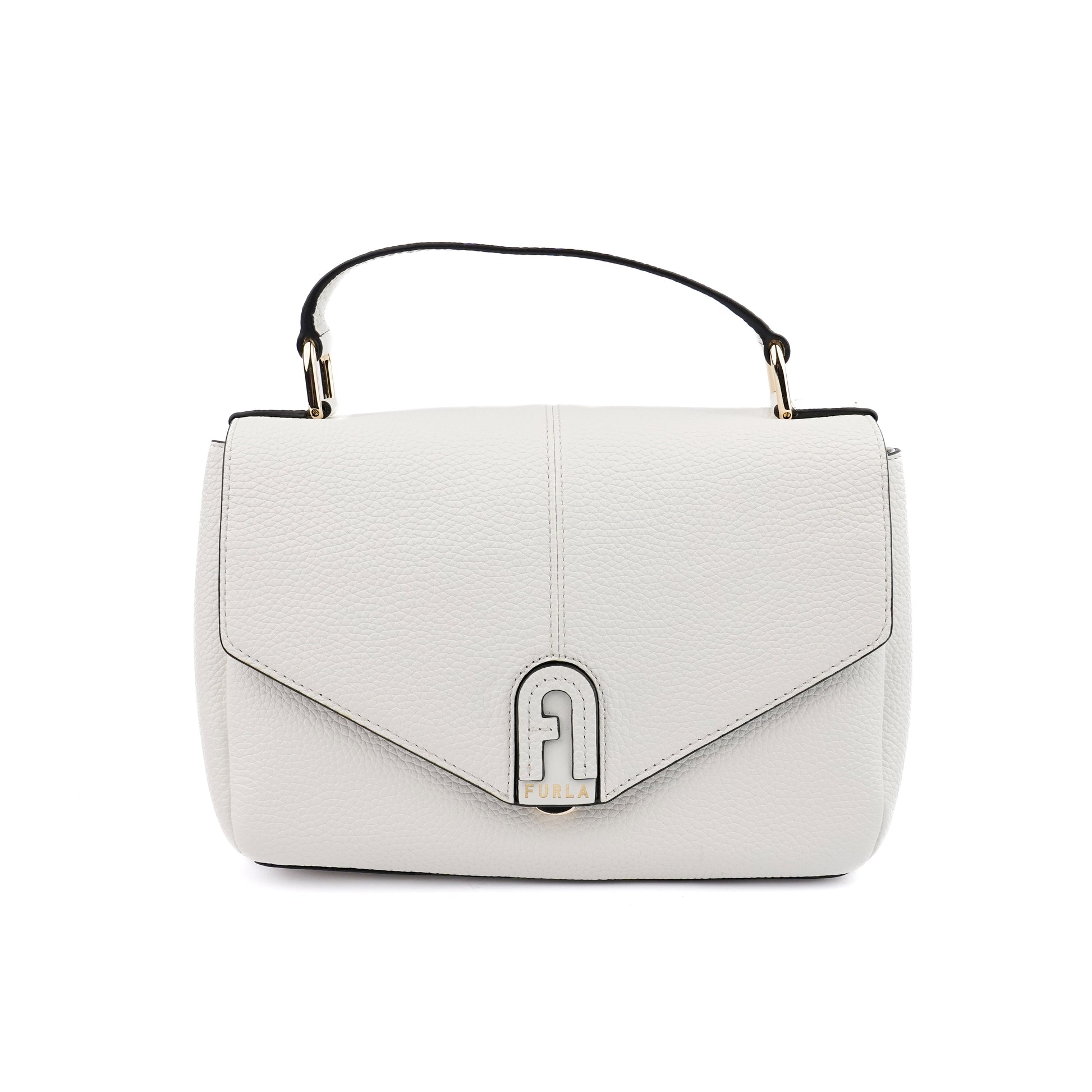 Furla Dafne S top handle white este o geantă realizată din piele de înaltă calitate, cu un finisaj sofisticat. Designul său compact, dar practic, include trei compartimente cu închidere sigură, dar și un buzunar exterior ideal pentru obiecte pe care le accesezi frecvent. Dispune de un mâner scurt pentru purtare în mână și o curea reglabilă și detașabilă, ideală pentru stil crossbody.