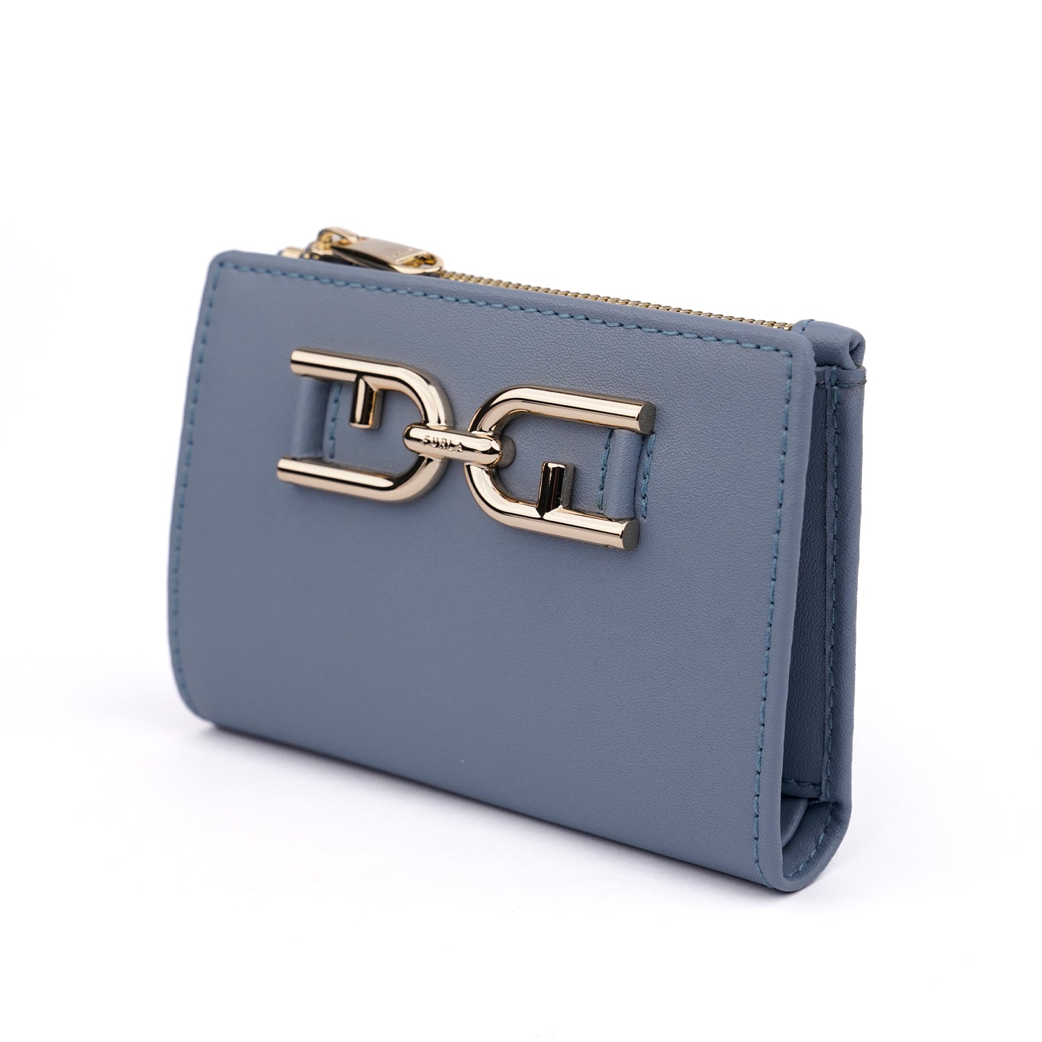 Interiorul bine compartimentat oferă spațiu pentru carduri, bancnote și monede, fiind perfect pentru viața de zi cu zi. Fermoarul metalic, cu finisaje de calitate, completează aspectul modern și luxos al acestui model.